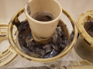 洗濯、すすぎ中に作動する循環水路ダクトです。ここを通った水が戻ってきますので、キレイにしておきたいポイントの1つです(画像は清掃前、清掃後)