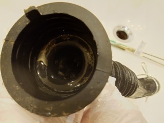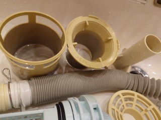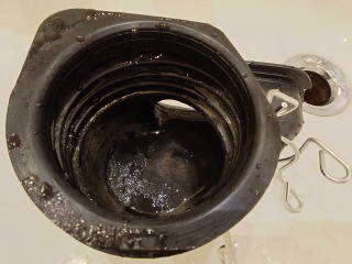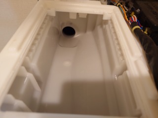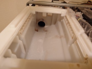 今回のU11エラー(排水エラー)の原因は、画像の排水トラップにありました。完全な排水の詰まりです。