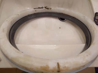 洗濯槽、洗濯水槽共、汚れが確認できます。