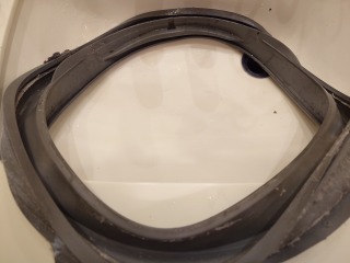 窓パッキンは、外して清掃(カビ取り)しました(画像は清掃前、清掃後)