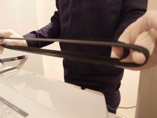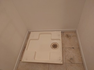 ベルト交換のために、洗濯機を前に出したので、防水洗濯パン、壁面を清掃しました。その後、洗濯機を元の位置に戻し、動作確認を行いました。