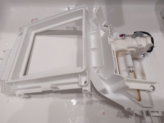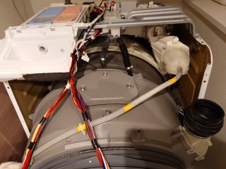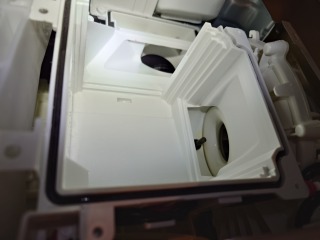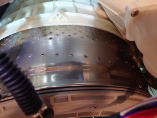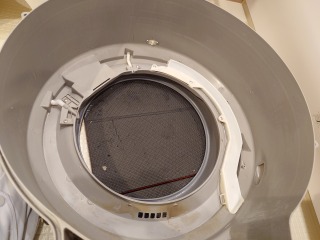 この洗濯乾燥機は、2021年発売開始の風アイロン搭載モデルで、快速洗乾コースを新たに搭載したモデルになります。乾燥機能が低下したという事で、分解清掃を承りました。