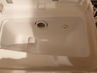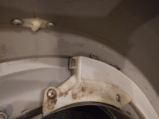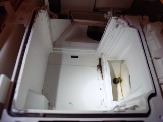 洗濯槽、洗濯水槽共、汚れが確認できます。特に洗濯水槽には、茶色の汚れが付着しています。