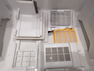 排水ダクト、排水トラップ、排水(糸くず)フィルター、排水口、夫々清掃しました(画像は清掃前、清掃後)