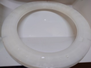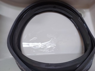 中に水が入っており、その遠心力で洗濯槽をスムーズに回す流体バランサーです(画像は清掃前、清掃後)