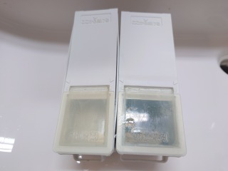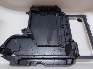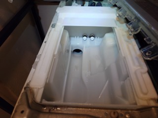 洗剤(柔軟剤)手動投入ケースを洗浄しました(画像は清掃前、清掃後)