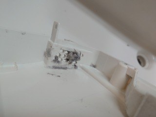 洗剤(柔軟剤)投入外側ケースを洗浄しました(画像は清掃前、清掃後)