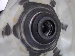 洗濯水槽に組み込まれているベアリングの周りには、洗濯槽が回転時に擦った跡が確認できます。